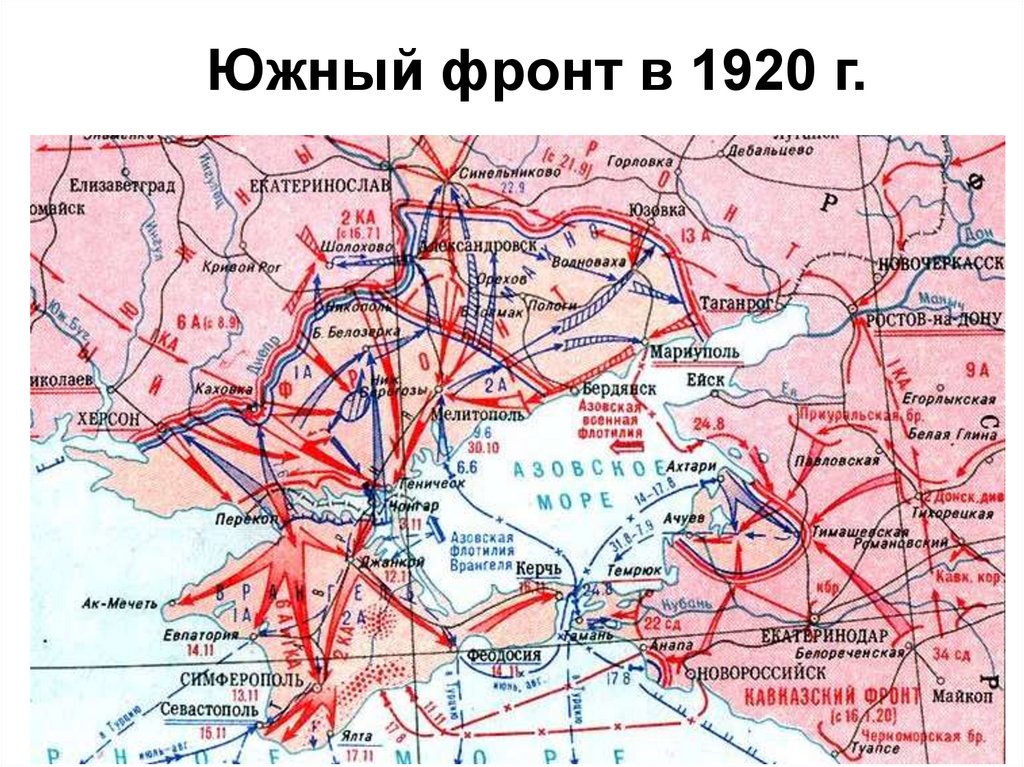 • разгром всех антисоветских, антибольшевистскихсил, поражение Белой армии и войск интервентов