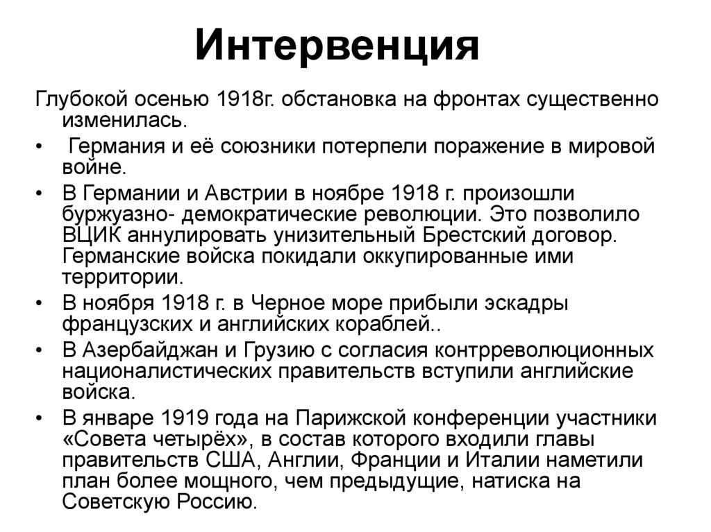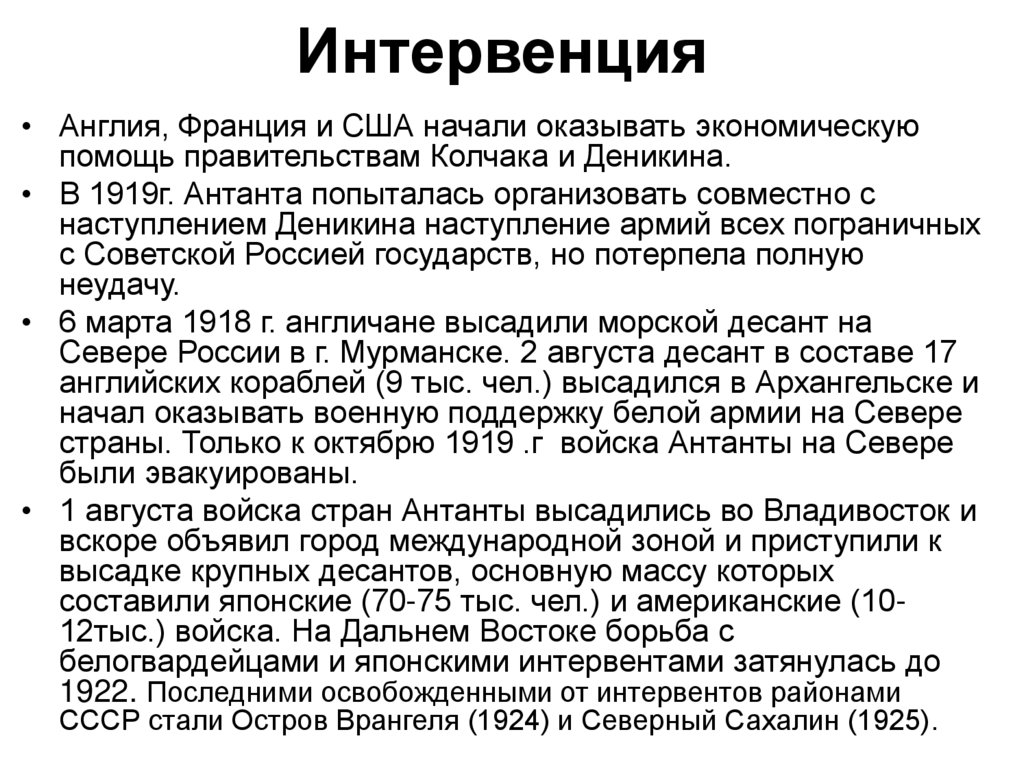 внутренние дела России. Интервенция стала