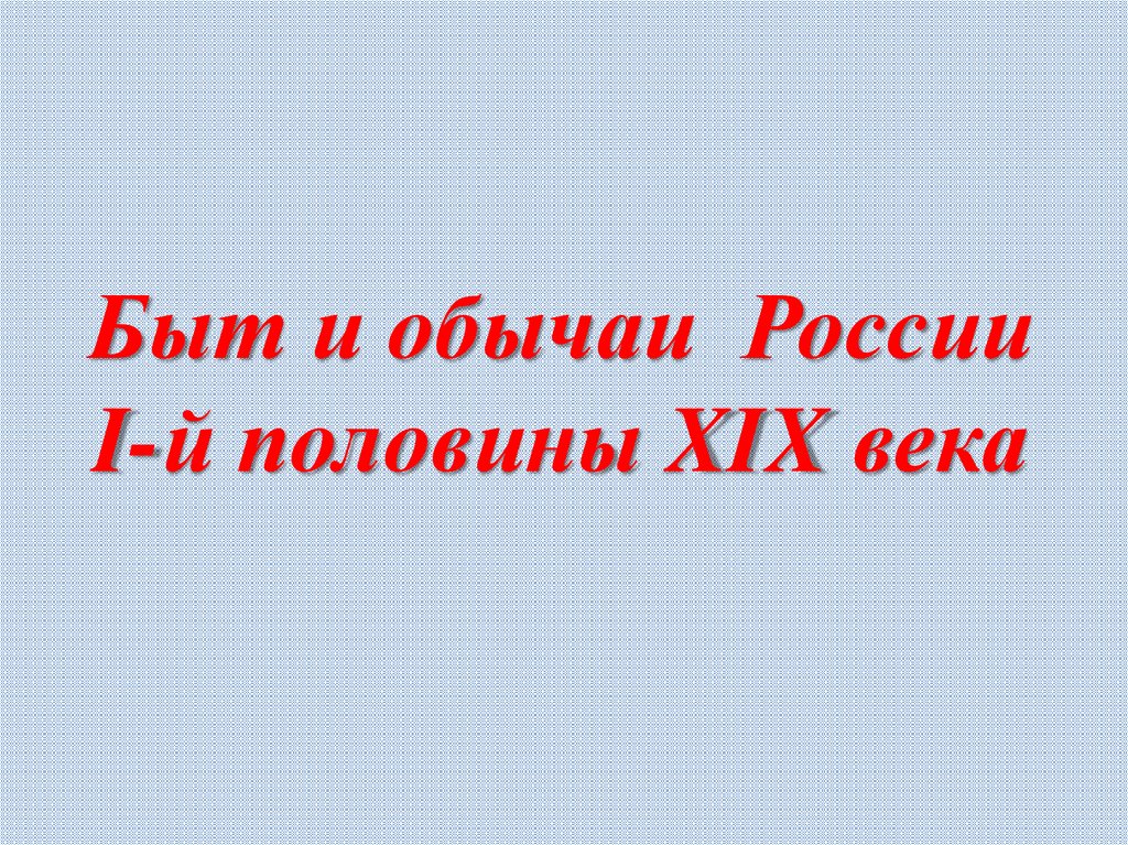 1. Быт и обычаи России I-й половины XIX века