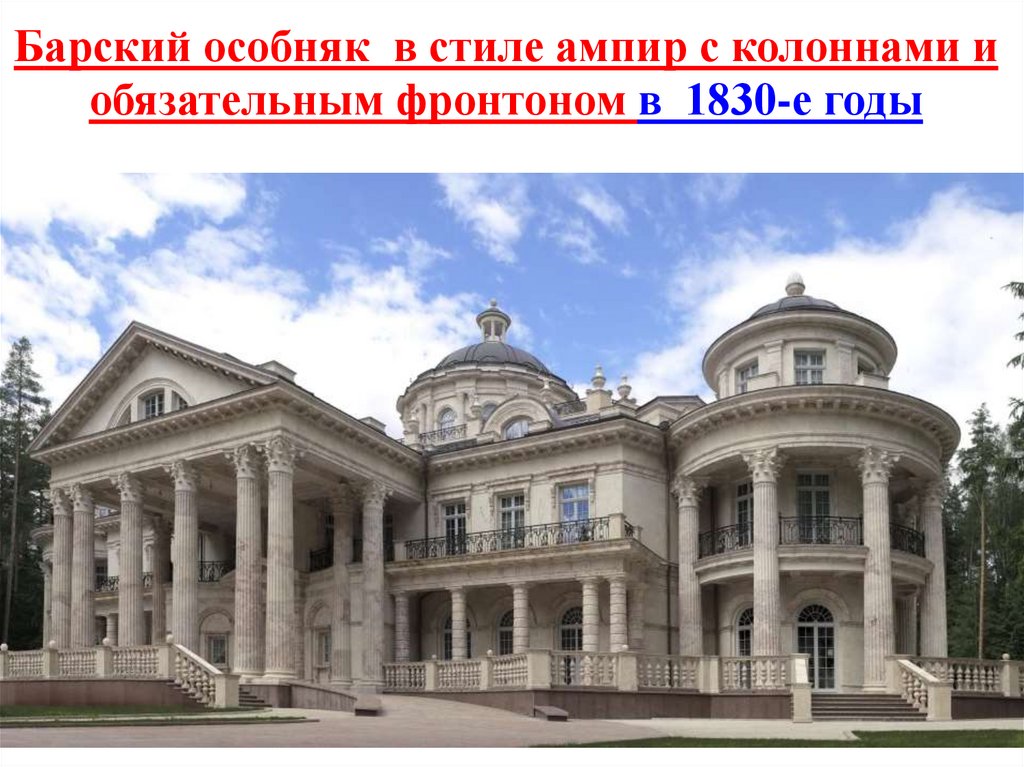 Барский особняк в стиле ампир с колоннами иобязательным фронтоном в 1830-е годы