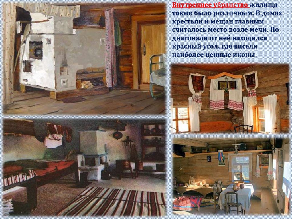 Внутреннее убранство жилищатакже было различным. В домах