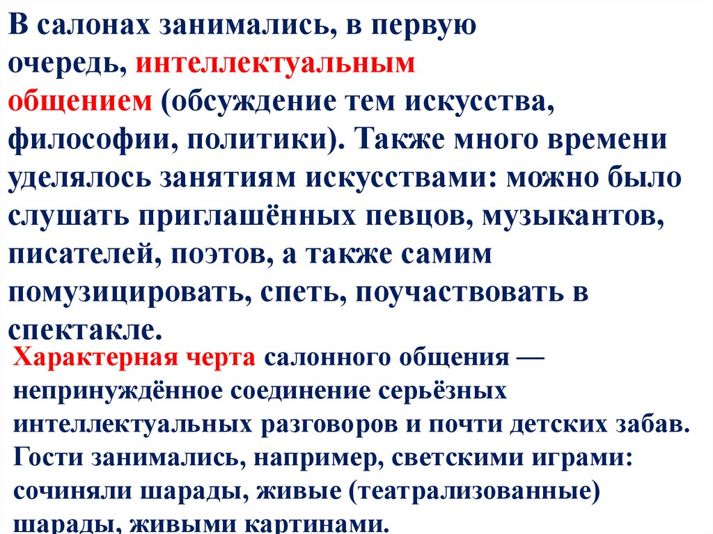 Характерная черта салонного общения —