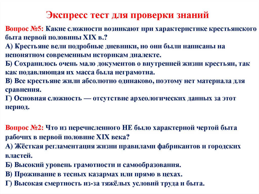 Экспресс тест для проверки знанийВопрос №5: Какие сложности возникают при характеристике крестьянского