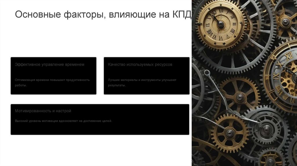 Основные факторы, влияющие на КПДЭффективное управление временем