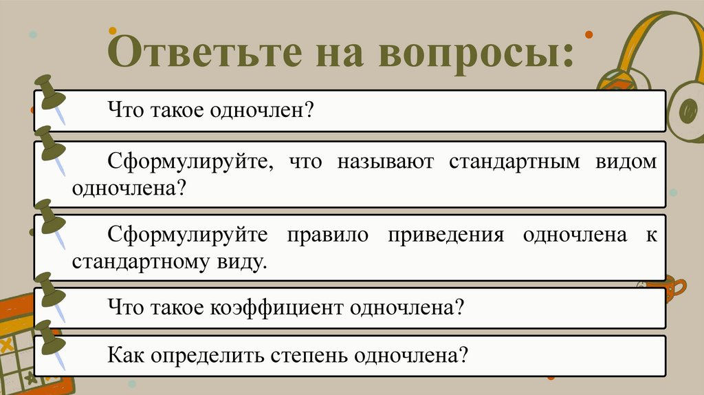 Ответьте на вопросы:Что такое одночлен?