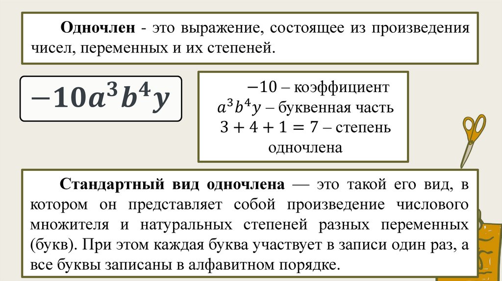 Что такое коэффициент одночлена?