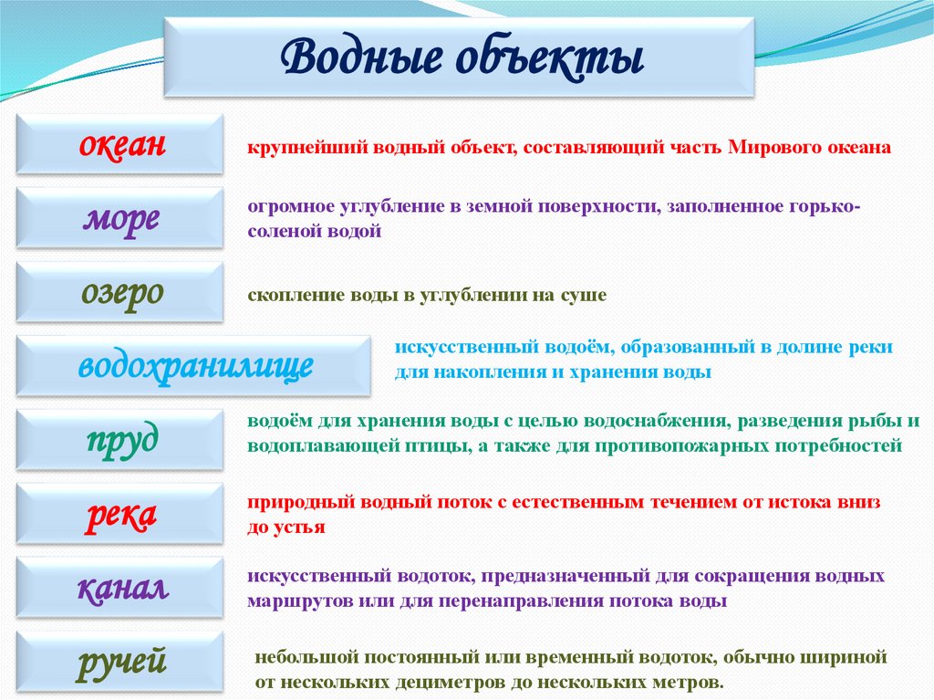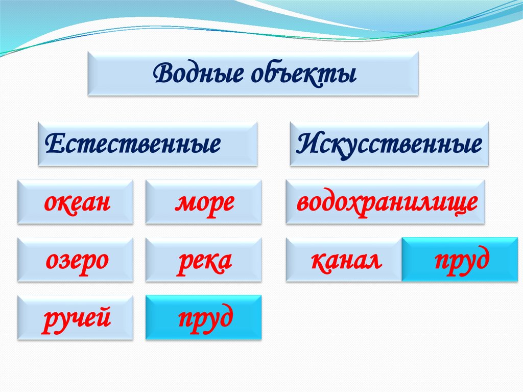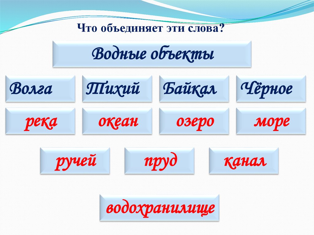 Что объединяет эти слова?Водные объекты