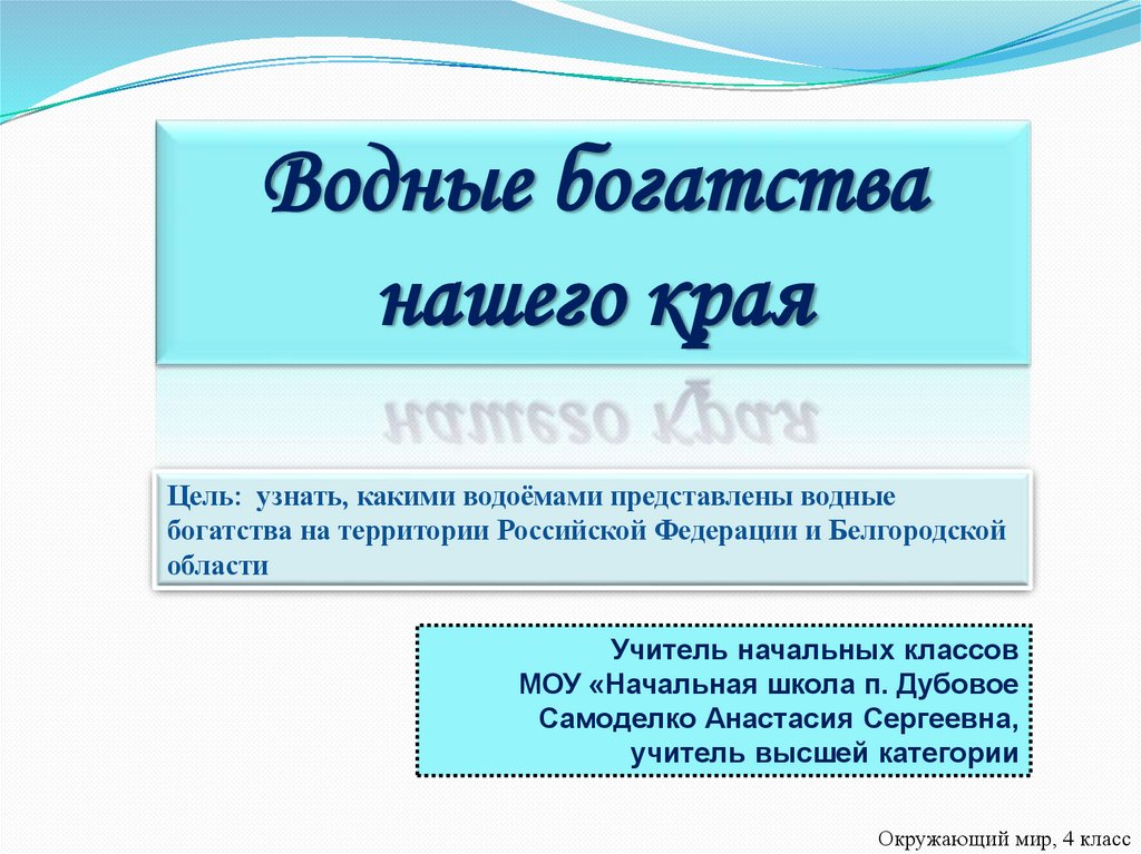 Окружающий мир, 4 класс, Презентация к уроку окружающего мира -Водные богатства нашего края. Белгородская область-