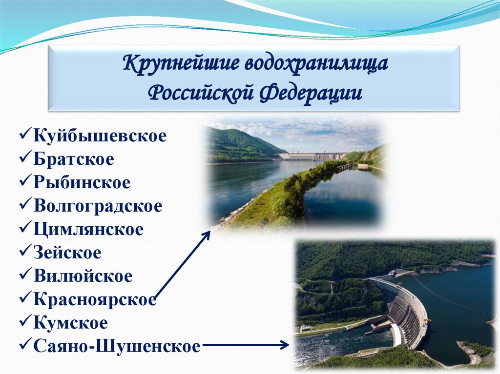 Крупнейшие водохранилищаРоссийской Федерации