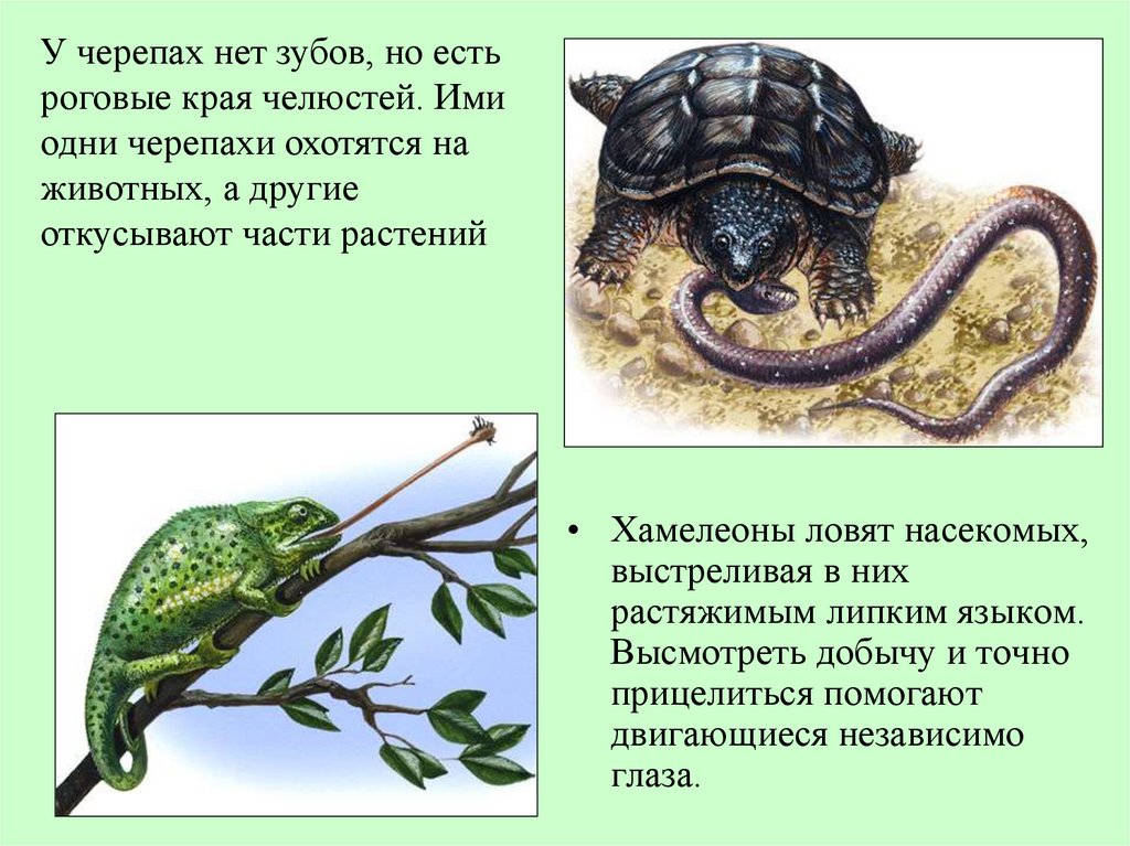 • Некоторые пресмыкающиеся могут произвольно изменятьокраску. Особенно известны этим хамелеоны: они быстро