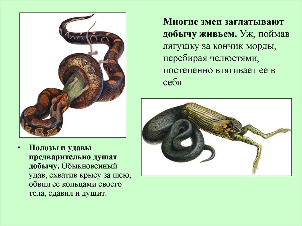 Многие змеи заглатываютдобычу живьем. Уж, поймав