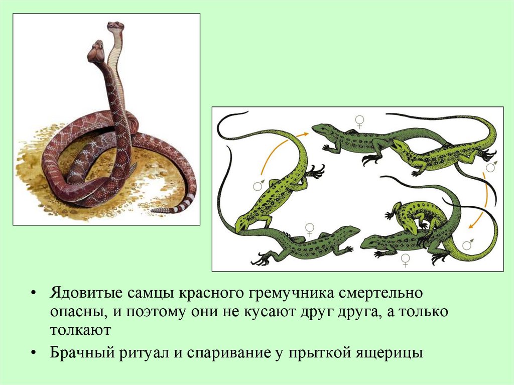 • Ядовитые самцы красного гремучника смертельноопасны, и поэтому они не кусают друг друга, а только