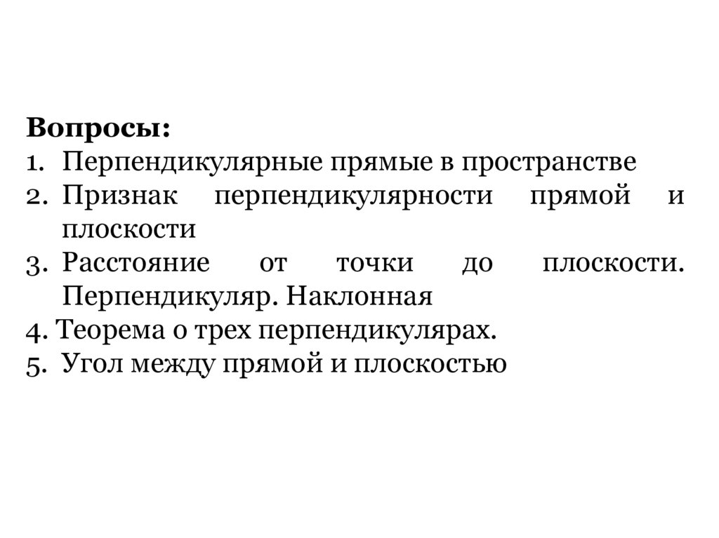 Вопросы:1. Перпендикулярные прямые в пространстве