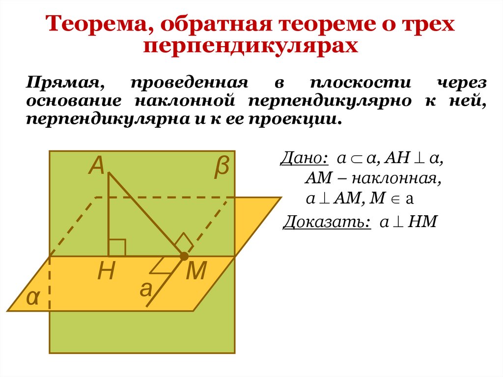 Теорема, обратная теореме о трехперпендикулярах