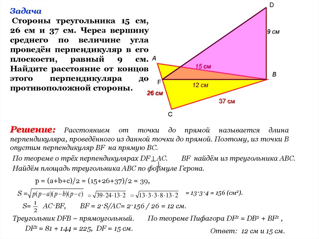 S = p( p a)( p b)( p c) 39 24 13 2 13 3 3 8 13 2 = 13·3·4 = 156 (см2).