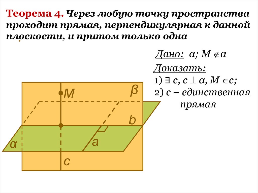 Теорема 4. Через любую точку пространствапроходит прямая, перпендикулярная к данной