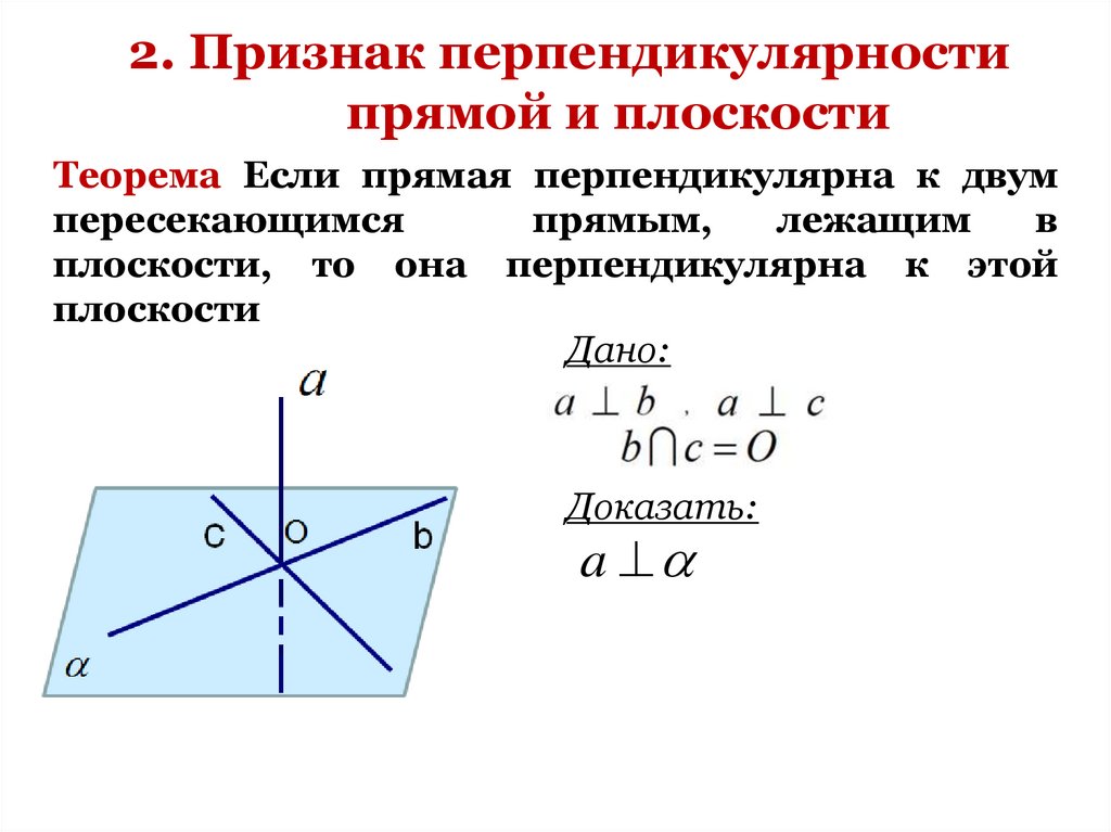 2. Признак перпендикулярности прямой и
