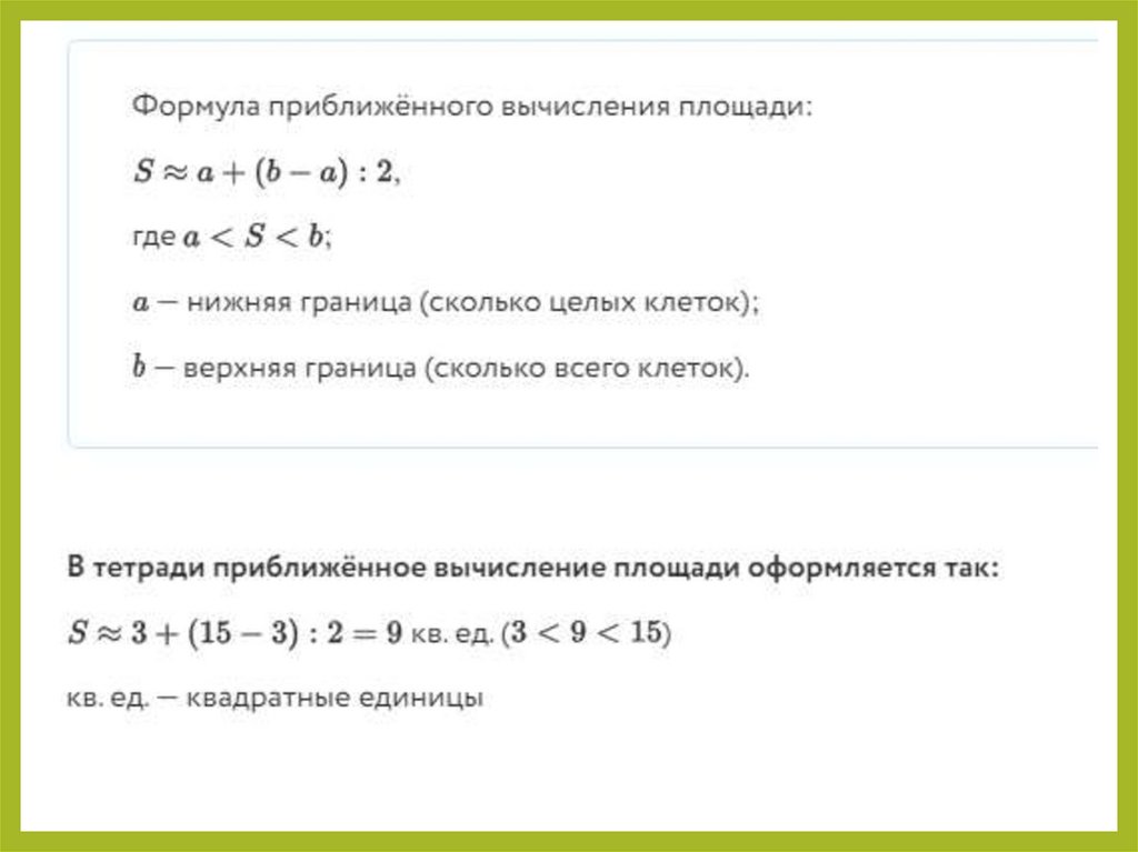 1.Выучить алгоритм приближенного вычисления площади.