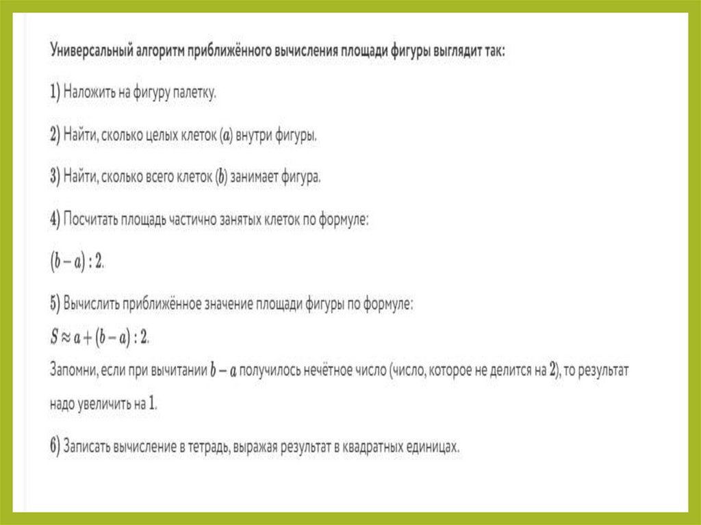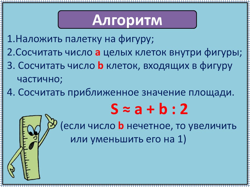 Алгоритм1.Наложить палетку на фигуру;