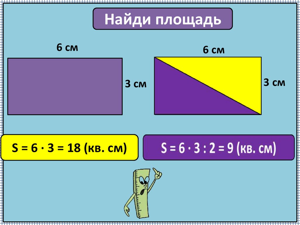 S = 6 ∙ 3 = 18 (кв. cм)