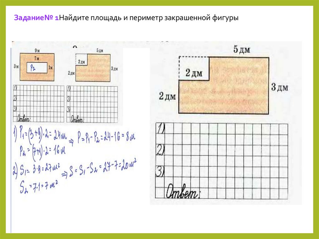 Задание№ 1Найдите площадь и периметр закрашенной фигуры9.