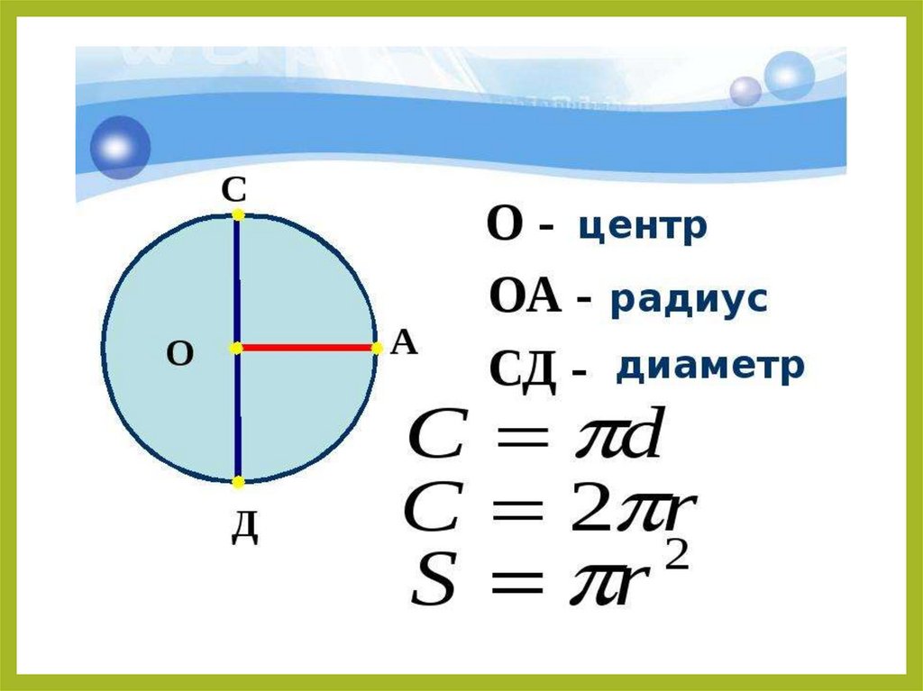 Повторить формулы нахождения площади круга, длины