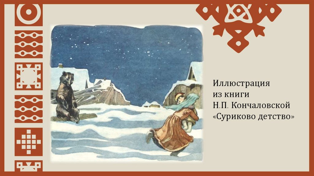 Иллюстрация из книгиН.П. Кончаловской «Суриково детство»