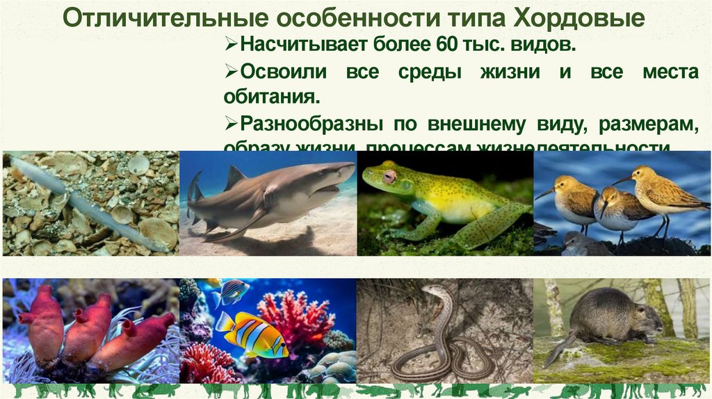 Отличительные особенности типа ХордовыеНасчитывает более 60 тыс. видов.