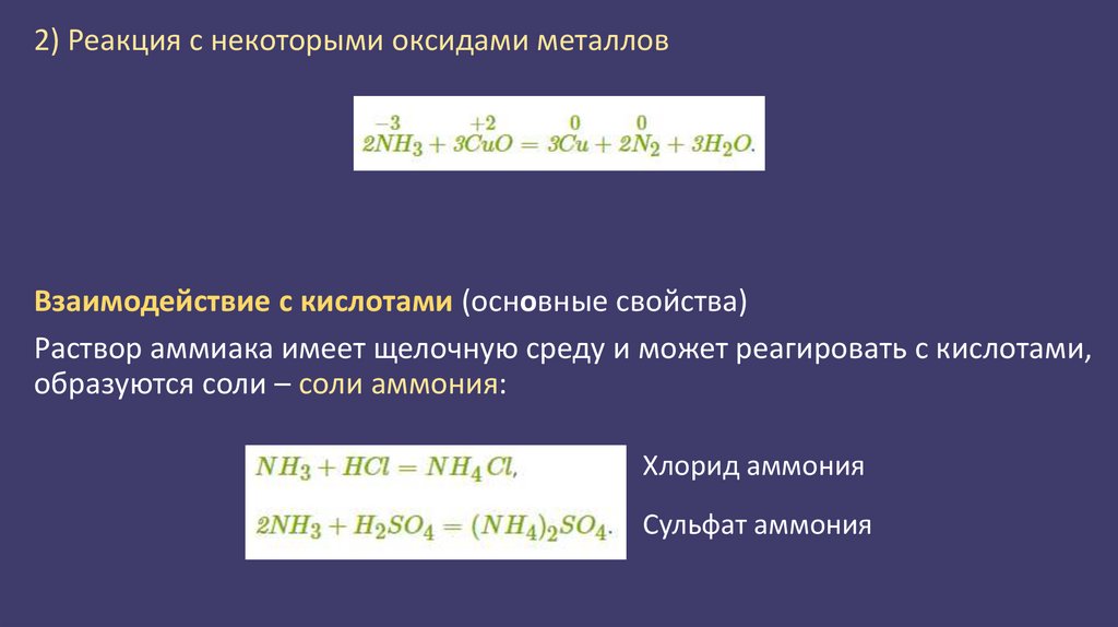 2) Реакция с некоторыми оксидами металловВзаимодействие с кислотами (основные свойства)