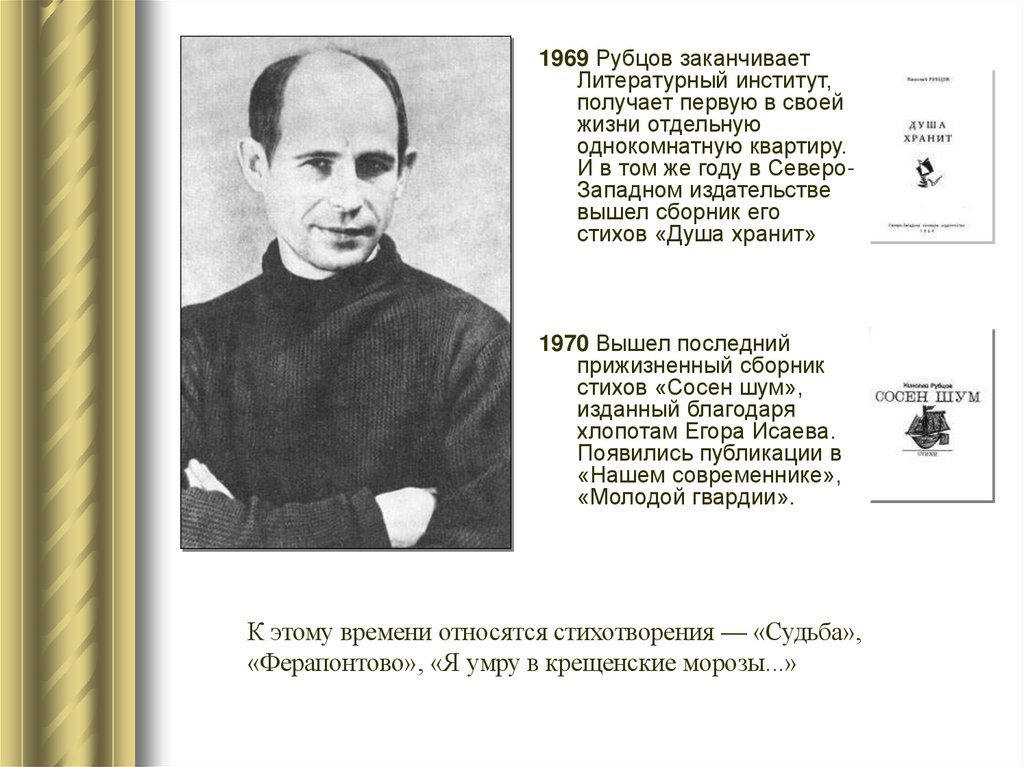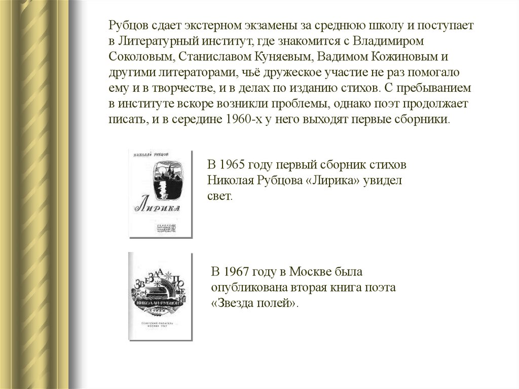 При жизни Николай Михайлович Рубцов издал толькочетыре тоненьких книжечки общим тиражом сорок