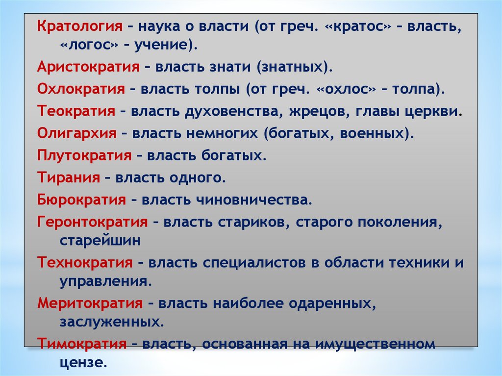 Кратология – наука о власти (от греч. «кратос» – власть,«логос» – учение).