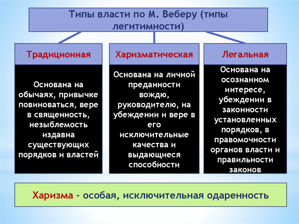 Типы власти по М. Веберу (типылегитимности)