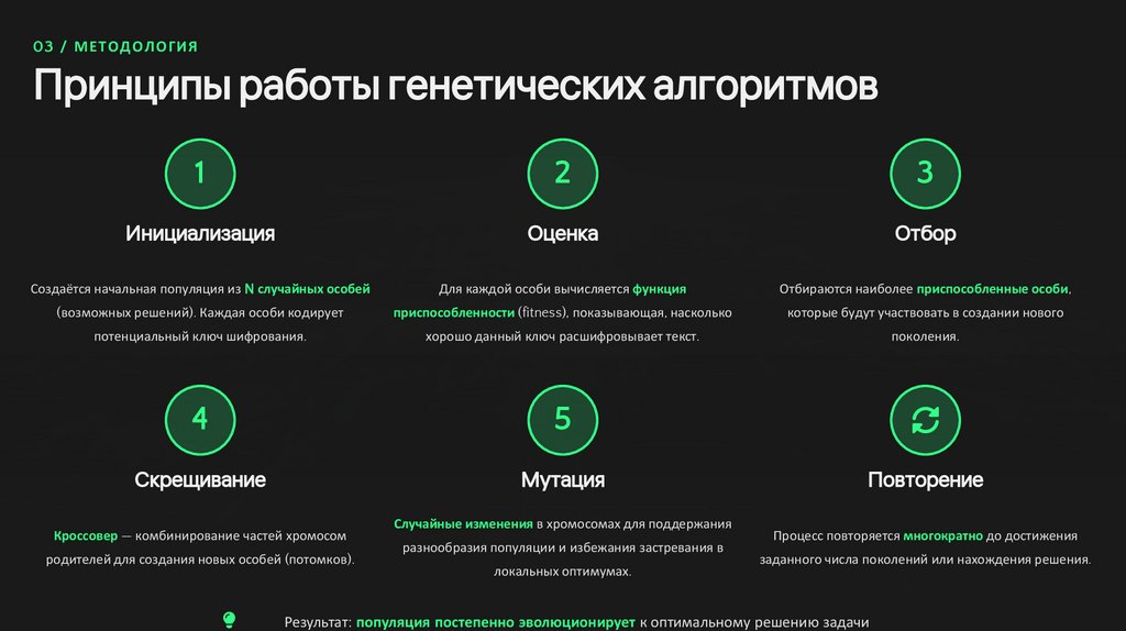 03 / МЕТОДОЛОГИЯПринципы работы генетических алгоритмов