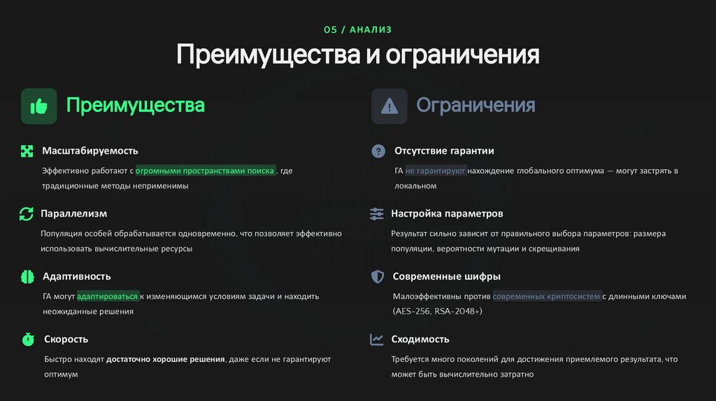 05 / АНАЛИЗПреимущества и ограничения