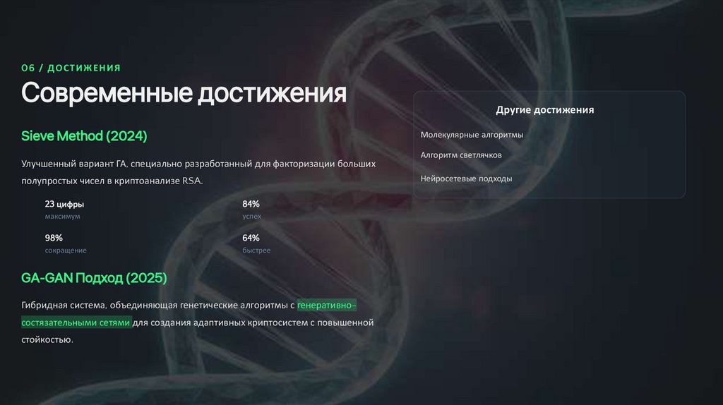 ГА применяются для факторизации больших чисел — ключевой проблемы взлома RSA
