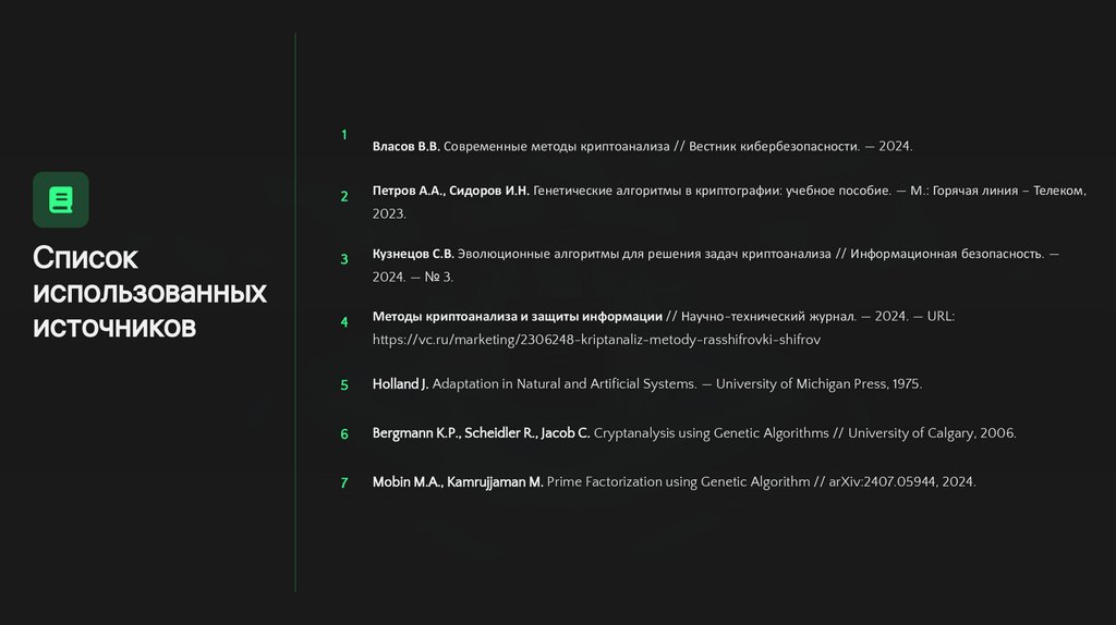 Петров А.А., Сидоров И.Н. Генетические алгоритмы в криптографии: учебное пособие. — М.: Горячая линия – Телеком,