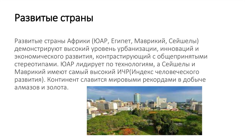 Развитые страныРазвитые страны Африки (ЮАР, Египет, Маврикий, Сейшелы)