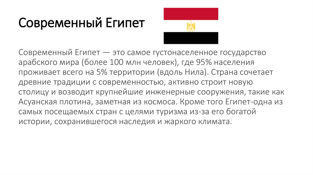 Современный ЕгипетСовременный Египет — это самое густонаселенное государство