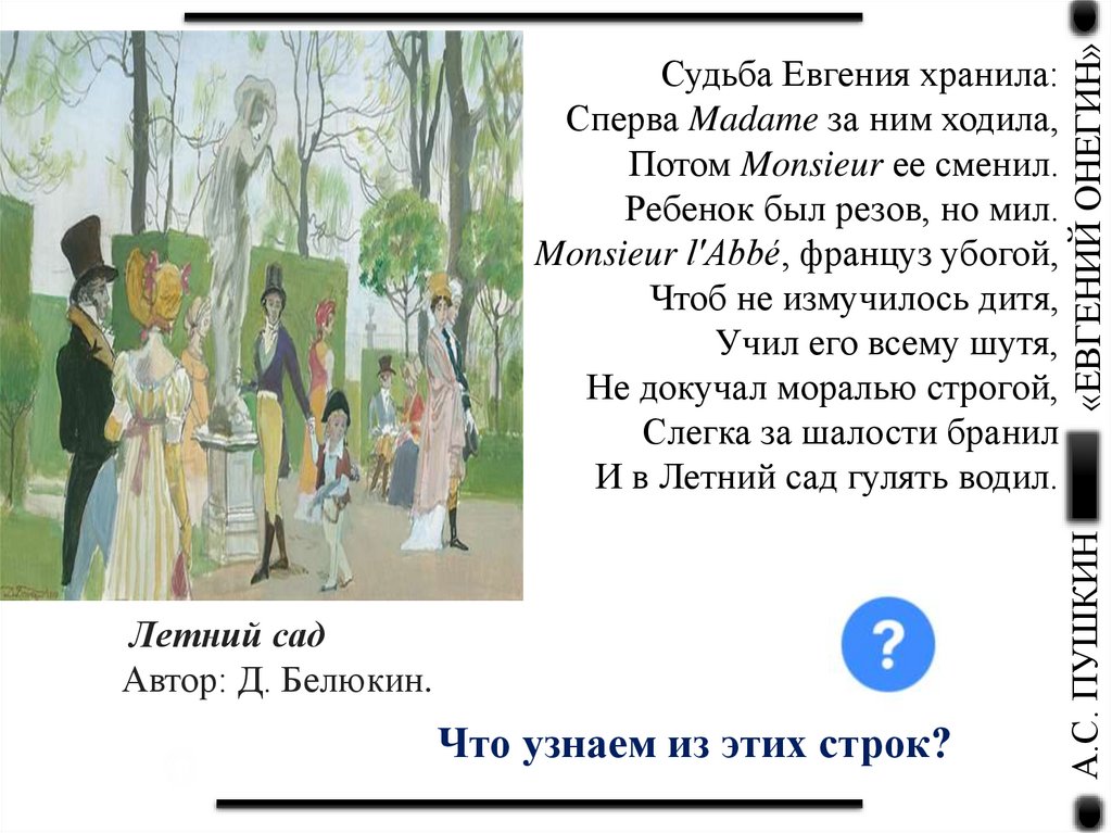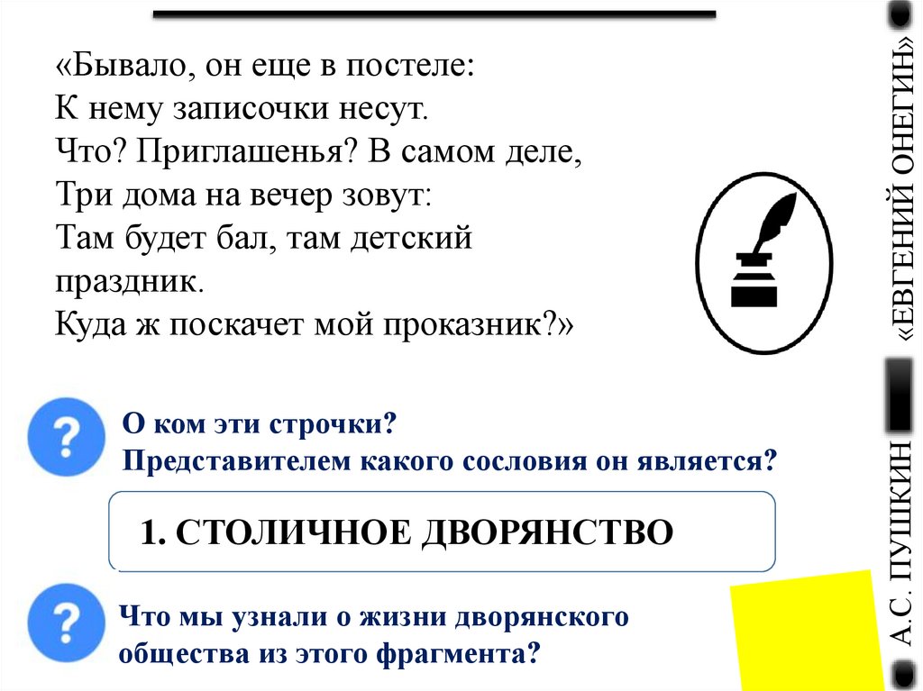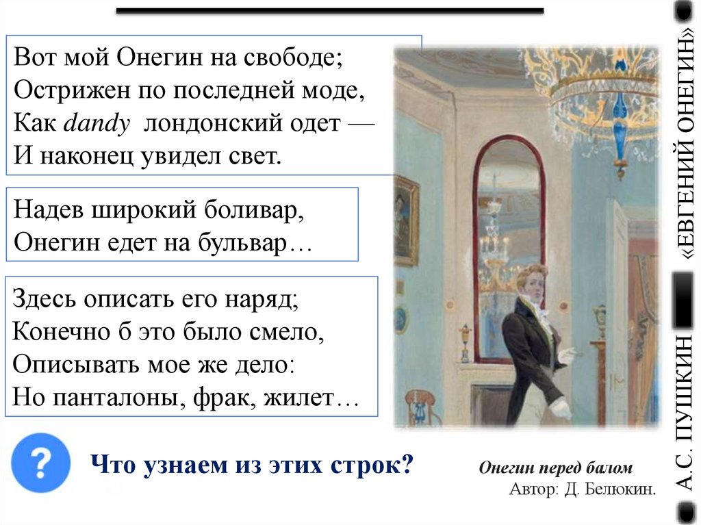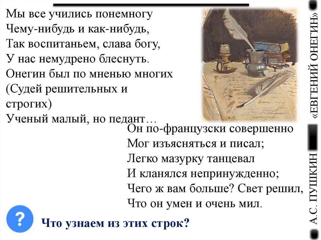 Что узнаем из этих строк?«ЕВГЕНИЙ ОНЕГИН»