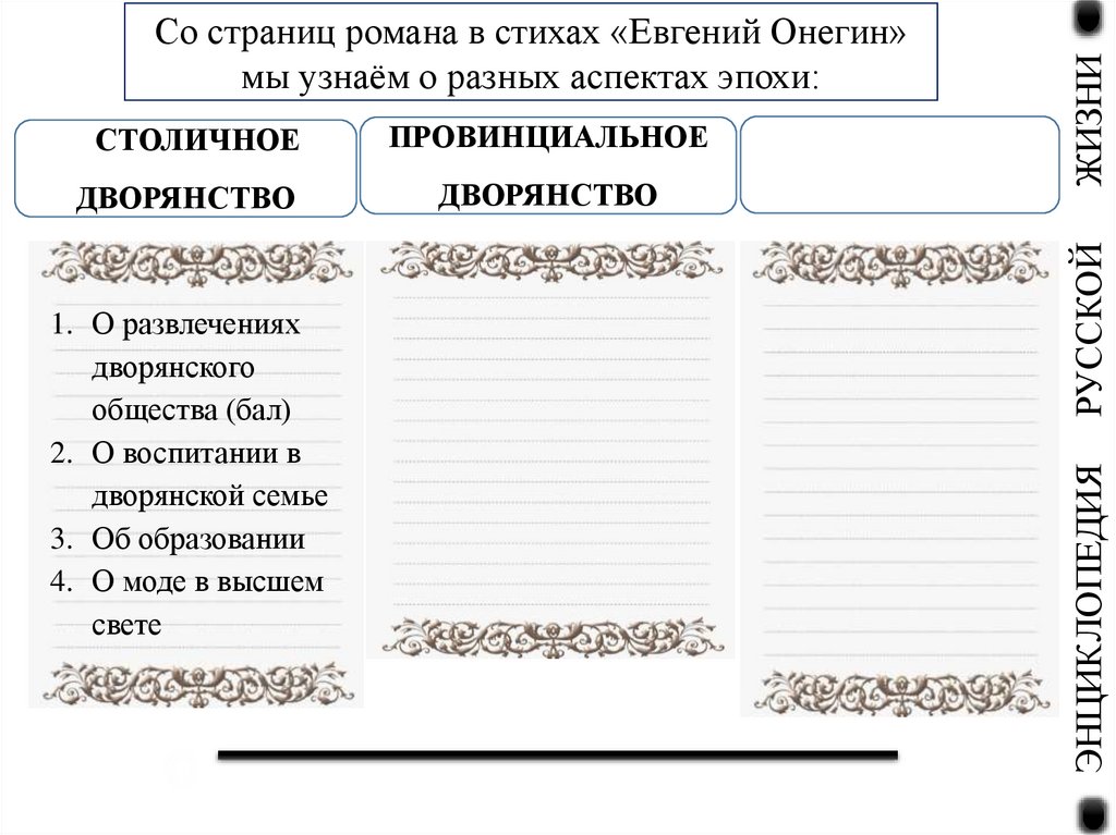 6. Тема: «Роман в стихах "Евгений Онегин" как энциклопедия русской жизни».