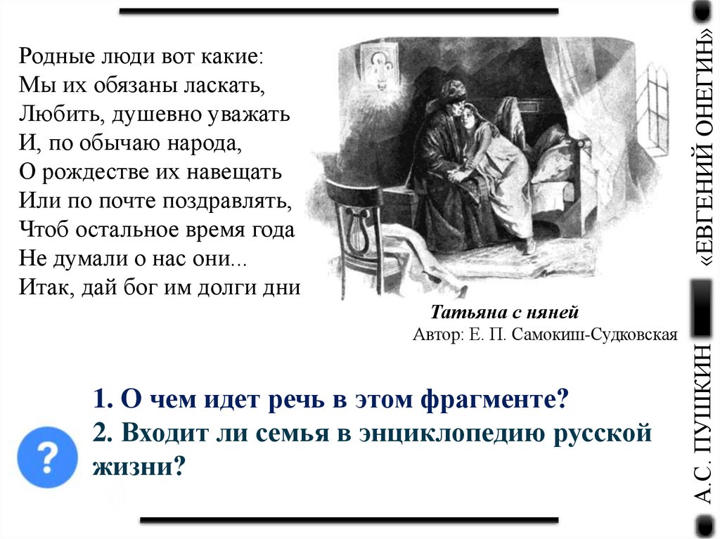 «ЕВГЕНИЙ ОНЕГИН»Родные люди вот какие: