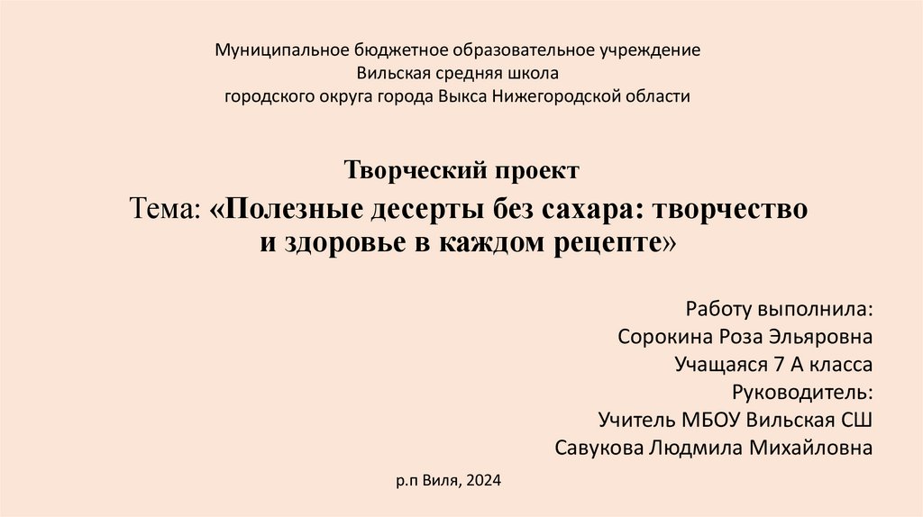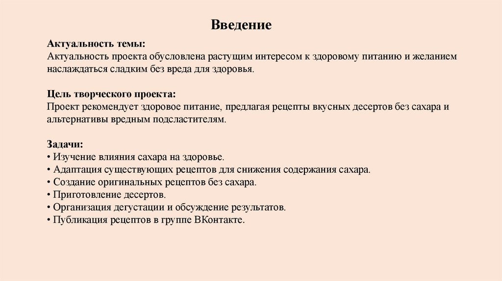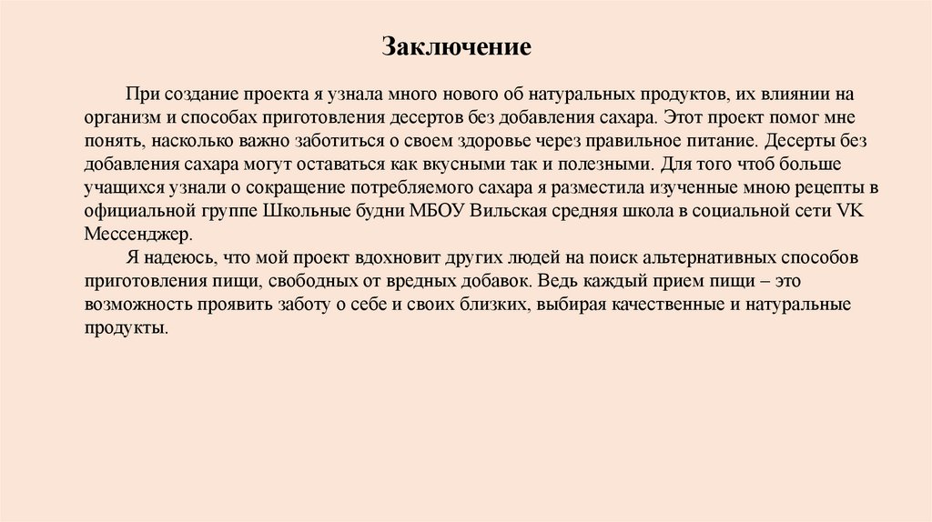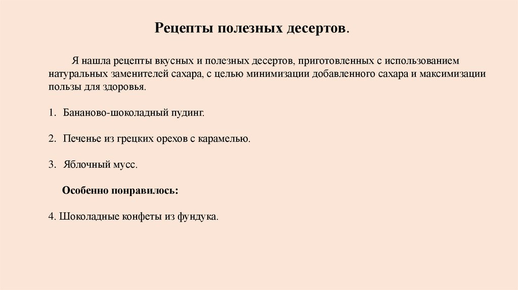 организм и способах приготовления десертов без добавления сахара. Этот проект помог мне