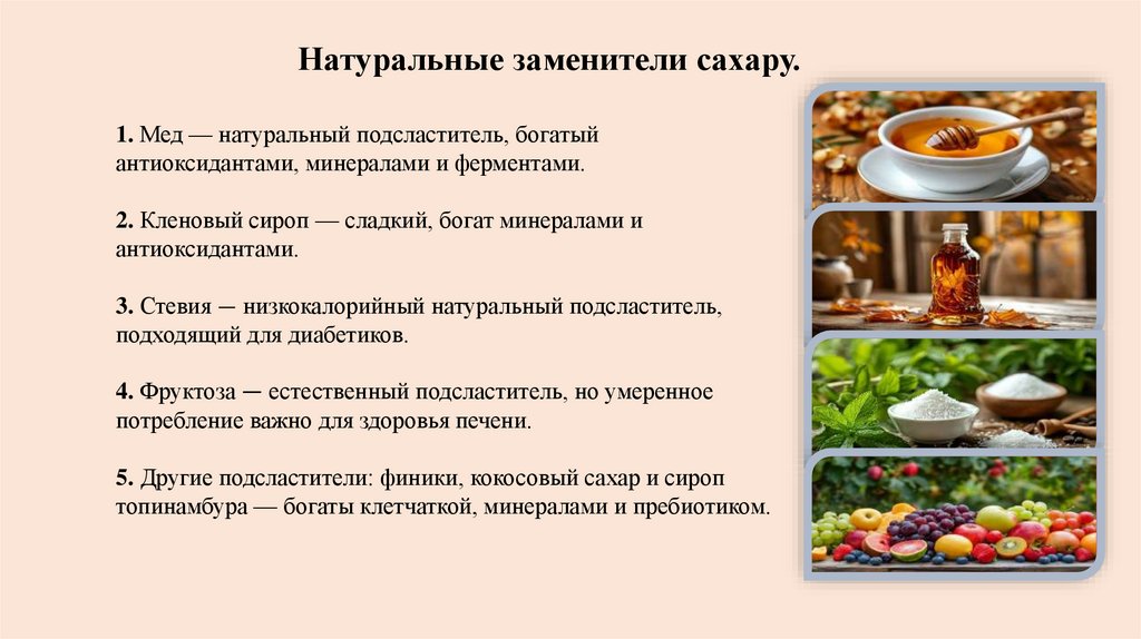 Натуральные заменители сахару.1. Мед — натуральный подсластитель, богатый