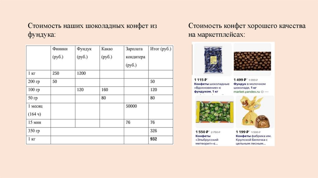 А теперь сравним стоимость Шоколадных конфет из фундука с стоимостью конфет хорошего