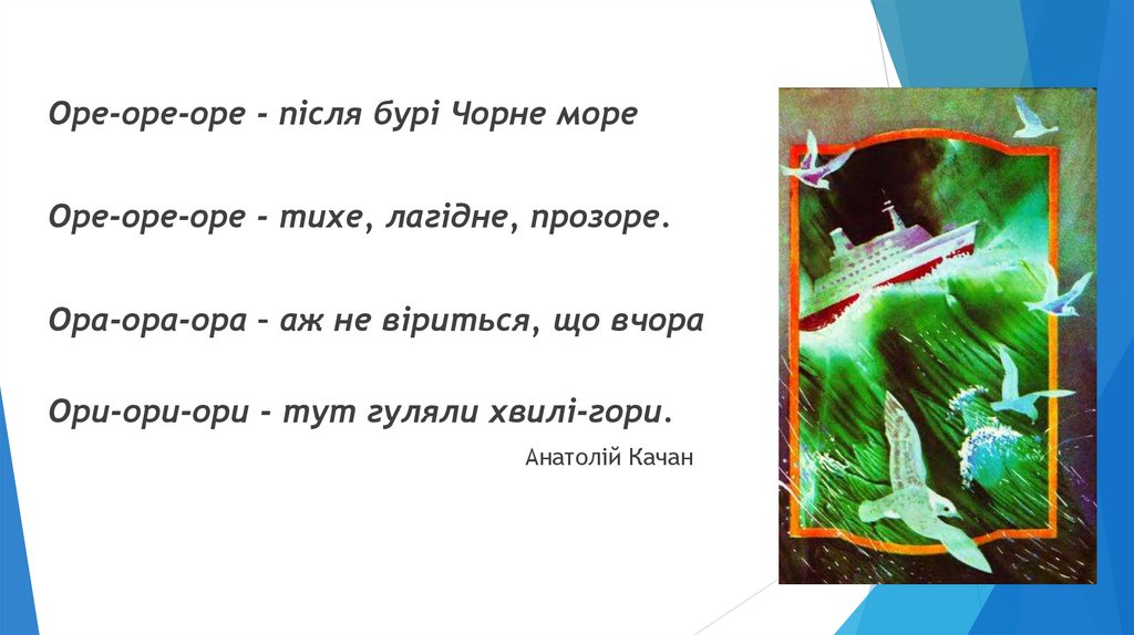 Оре-оре-оре - після бурі Чорне мореОре-оре-оре - тихе, лагідне, прозоре.