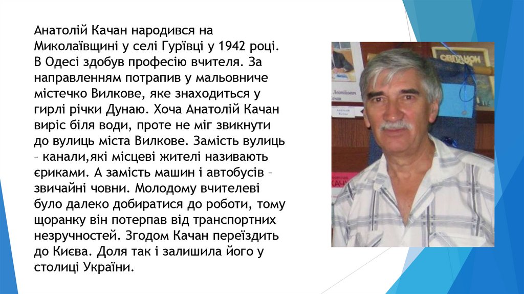 Анатолій Качан народився наМиколаївщині у селі Гурївці у 1942 році.