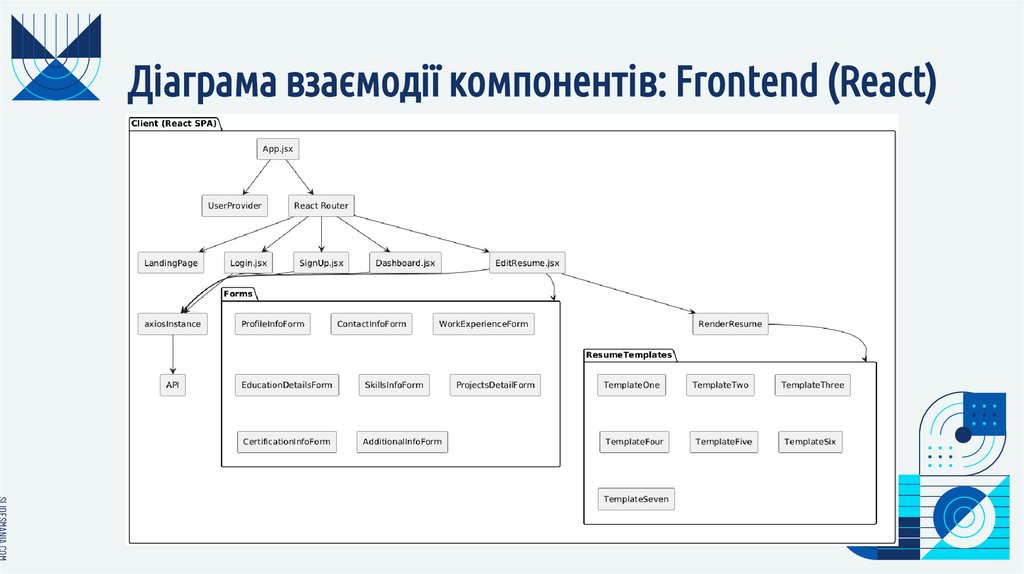 Діаграма взаємодії компонентів: Frontend (React)SLIDESMANIA.COM