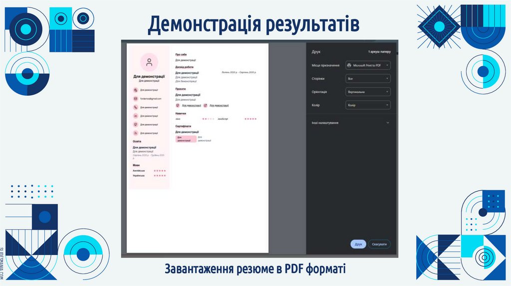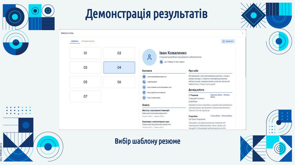 реалізовано функціональну систему конструктора резюме з адаптивним