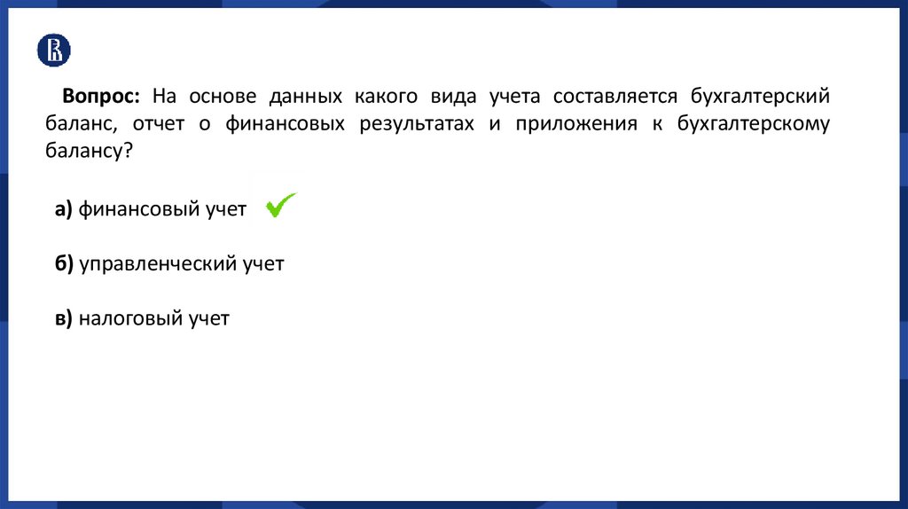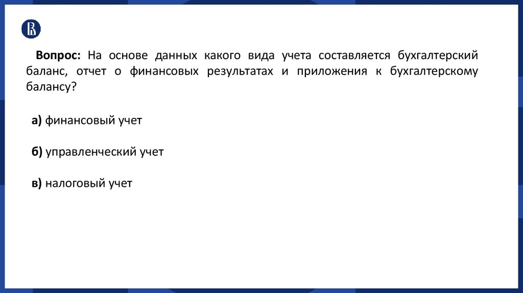 43Вопрос: На основе данных какого вида учета составляется бухгалтерский