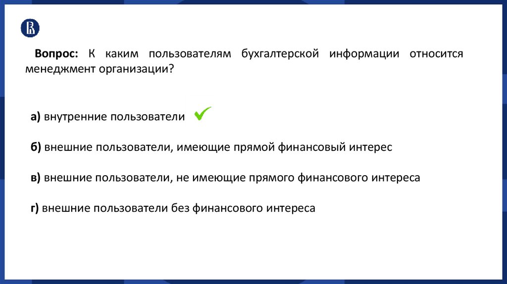 б) внешние пользователи, имеющие прямой финансовый интерес